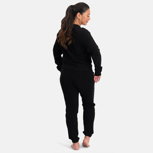 This black loungewear sweater is perfect for cozy days at home. With its timeless fit and high-quality finish, it offers style, warmth and comfort at the same time.