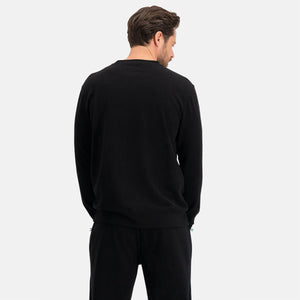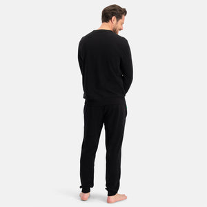 This black loungewear sweater is the perfect choice for cozy days at home. With its timeless fit and high-quality workmanship, it combines style, warmth and comfort in a modern design.